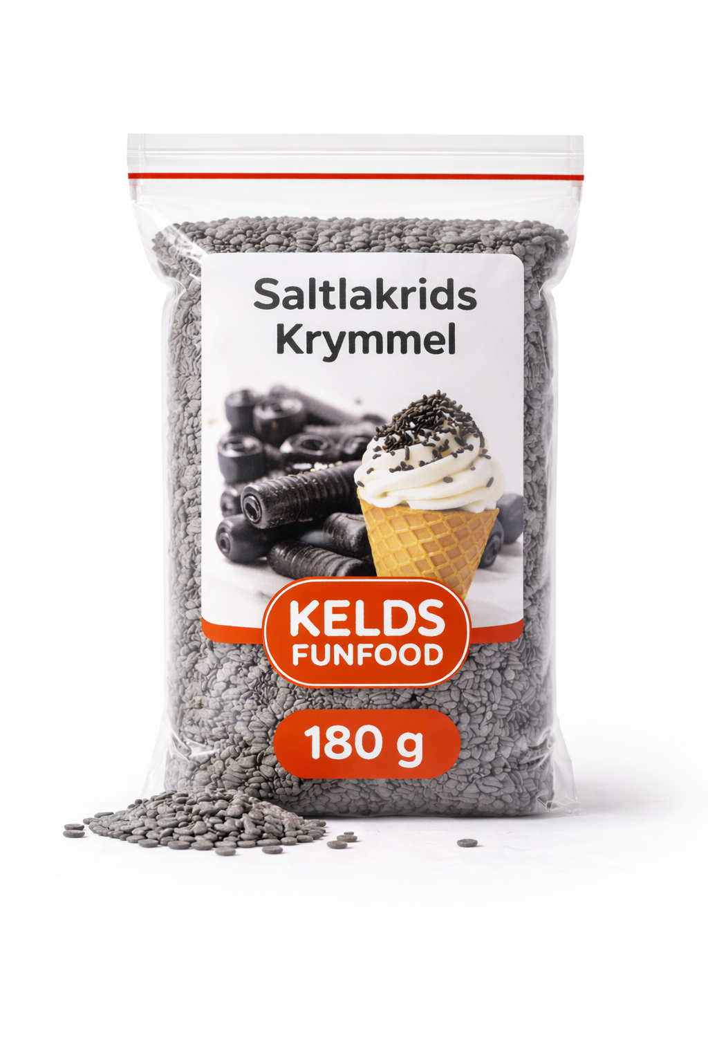 Saltlakrids Krymmel er sprøde, små lakridsstykker med karakteristisk saltet smag, perfekt som topping på softice, is, milkshakes eller desserter. Den fyldige lakridssmag og knasende tekstur gør det til et populært valg hos både børn og voksne, som ønsker en anderledes og spændende finish på deres dessert.